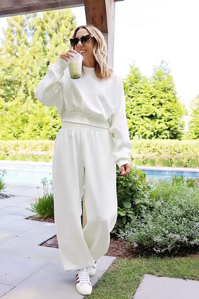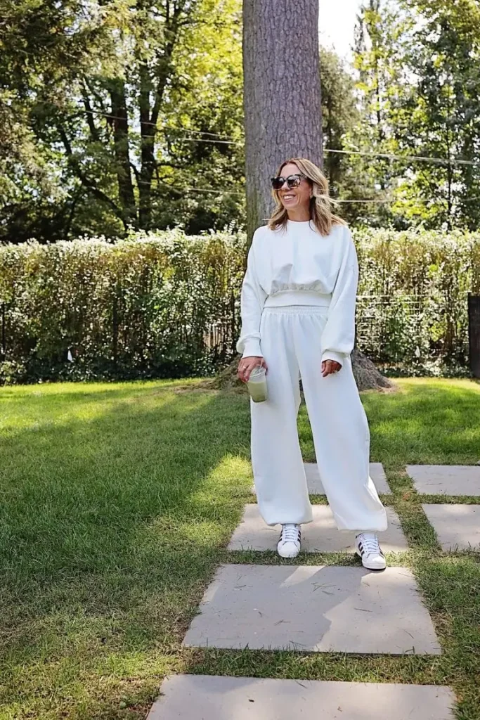 Whether your day takes you from early dog walks to school drop-offs, a round of errands, or settling in to work from home, this Superstar-powered look delivers on both mobility and style. The soft layers move with you, the sneakers ground your outfit (literally and figuratively), and the overall vibe strikes that perfect balance between cozy and chic.