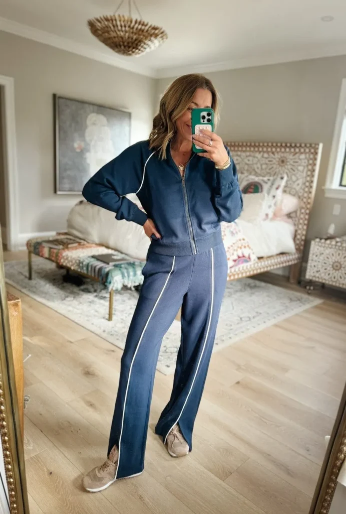 Pro styling tip: Make it a set. Because the only thing better than a cozy track pant is one that comes with a matching jacket. No guesswork. No stress. Just zip up, slip on, and go—looking like you totally had time to plan your outfit (even if you didn’t).